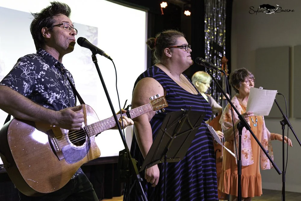 À travers vingt-et-un ateliers dirigés par les artistes Sarah « Bisha » Touchette et Ian Fournier, des participants vivant avec une déficience intellectuelle légère et d’autres citoyens ont créé et présenté un spectacle mêlant chansons et théâtre.